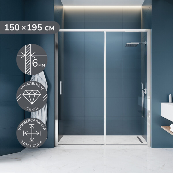 Душевая дверь для оборудования ванных комнат имеет закаленное прозрачное стекло толщиной 6 мм, которое травмобезопасно, выдерживает высокие перепады температур и устойчиво к механическому воздействию. Анодированный алюминиевый профиль 38 мм – защита от коррозии. Регулировка ширины двери от 1470 до 1510 мм позволяет компенсировать неровности стен и настроить размер душевой двери под ваш проем. Ролики с металлическим корпусом обеспечивают плавность хода двери и рассчитаны минимум на 30 000 циклов открывания. Уплотнители из ПВХ защитят пространство от брызг. Благодаря магнитному замку створка герметично закрывается. Хромоникелевое покрытие устойчиво к потускнению, отслаиванию и выцветанию. Поддон в комплект не входит. Возможна установка как на поддон, так и непосредственно на пол.