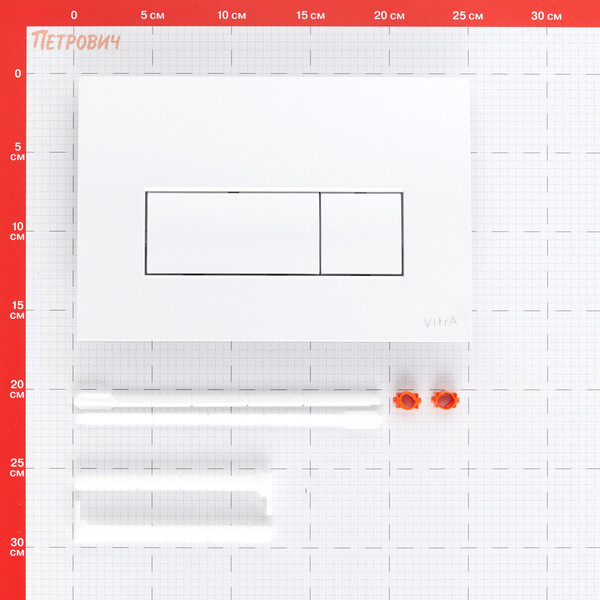Механическая клавиша смыва имеет два режима и пластиковый корпус. Подходит для использования со встраиваемыми инсталляциями Vitra V-Fix Core. Размеры – 244х165х8 мм. Гарантия 5 лет