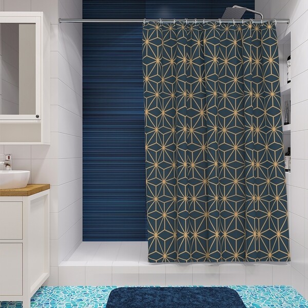 Штора для ванной Fora насыщенного цвета с золотистым геометричным принтом – яркое решение для санузла в современном стиле. Покрытая водоупорной пропиткой с двух сторон, она не задерживает на себе воду и известковые пятна, сохраняя эстетику и чистоту.